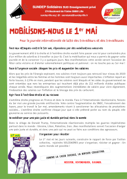 Le 1er mai et les jours suivants, construire le rapport de force par l’action collective, rejoindre SOLIDAIRES pour s’organiser, résister et gagner : Un autre monde est possible !